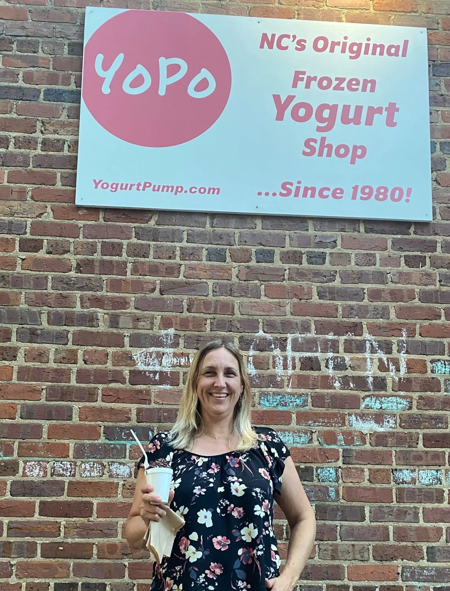 Yogurt Pump, just steps from the UNC Chapel Hill campus, has the honor of being North Carolina’s first frozen yogurt shop, opening in 1982. Operating old school style, where the staff prepares your order rather than self-service, YoPo as it’s affectionately called, still maintains its 80’s vibe. Flavors change daily, and range from Raspberry Tart to Dulce de Leche, in addition to a rotating non-dairy option. On a recent summer evening, the line was out the door with a mix of students, families, and teens. My husband enjoyed a classic Chocolate/Vanilla combo but added some Twix candy to mix it up, and I tried the Peanut Butter with chocolate sprinkles. The servings were generous and the yogurt was delicious. Stop by YoPo the next time you’re in downtown Chapel Hill and enjoy a little piece of history.